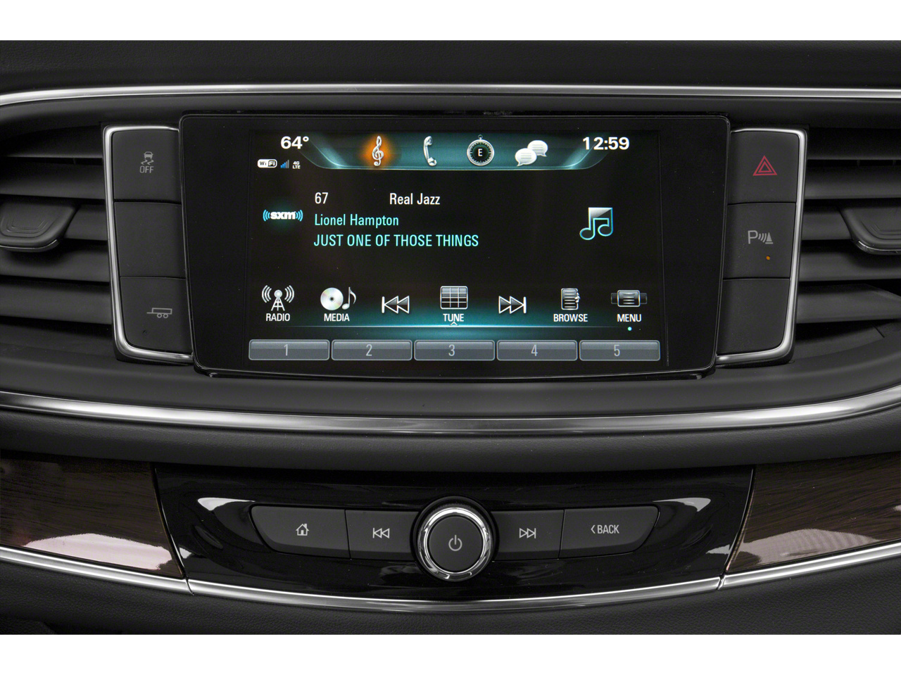 - Audio system, Buick Infotainment System with Navigation, AM/FM stereo, SiriusXM, with 8" diagonal Color Touch Screen includes 2 USB ports inside center console, auxiliary input jack, and Bluetooth® streaming for audio and select phones and Phone Integration for Apple CarPlay and Android Auto capability for compatible phone