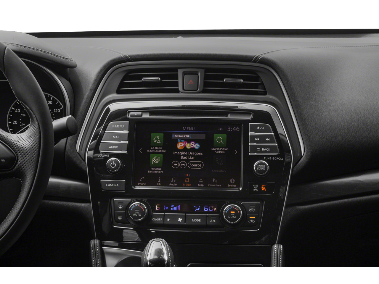 - Radio: AM/FM/CD Audio System w/Navigation -inc: MP3/WMA reader, NissanConnect w/navigation and services featuring Apple CarPlay and Android Auto, 8" color display w/multi-touch control, 2 front illuminated USB connection ports (1 Type-A, 1 Type-C) for iPod interface and other compatible devices, Bluetooth® hands-free phone system, streaming audio via Bluetooth®, hands-free text messaging assistant, SiriusXM satellite w/advanced audio features, auxiliary audio input jack, Nissan door to door navigation w/3D building graphics and satellite imagery, connected navigation features including online POI search, door-to-door navigation, and online premium traffic information, HD radio, SiriusXM Travel Link (weather, fuel prices, movie listings, stock info, sports and parking), SiriusXM Traffic, 11 speaker Bose sound system, 2 rear illuminated USB charge ports (1 Type-A, 1 Type-C), NissanConnect services powered by SiriusXM - automatic collision notification, emergency call and stolen vehicle locator, remote services including start/stop, lock/unlock, flash lights, sound horn, customizable alerts including drive zone, valet, curfew and speed alerts, dealer service scheduling and maintenance alerts