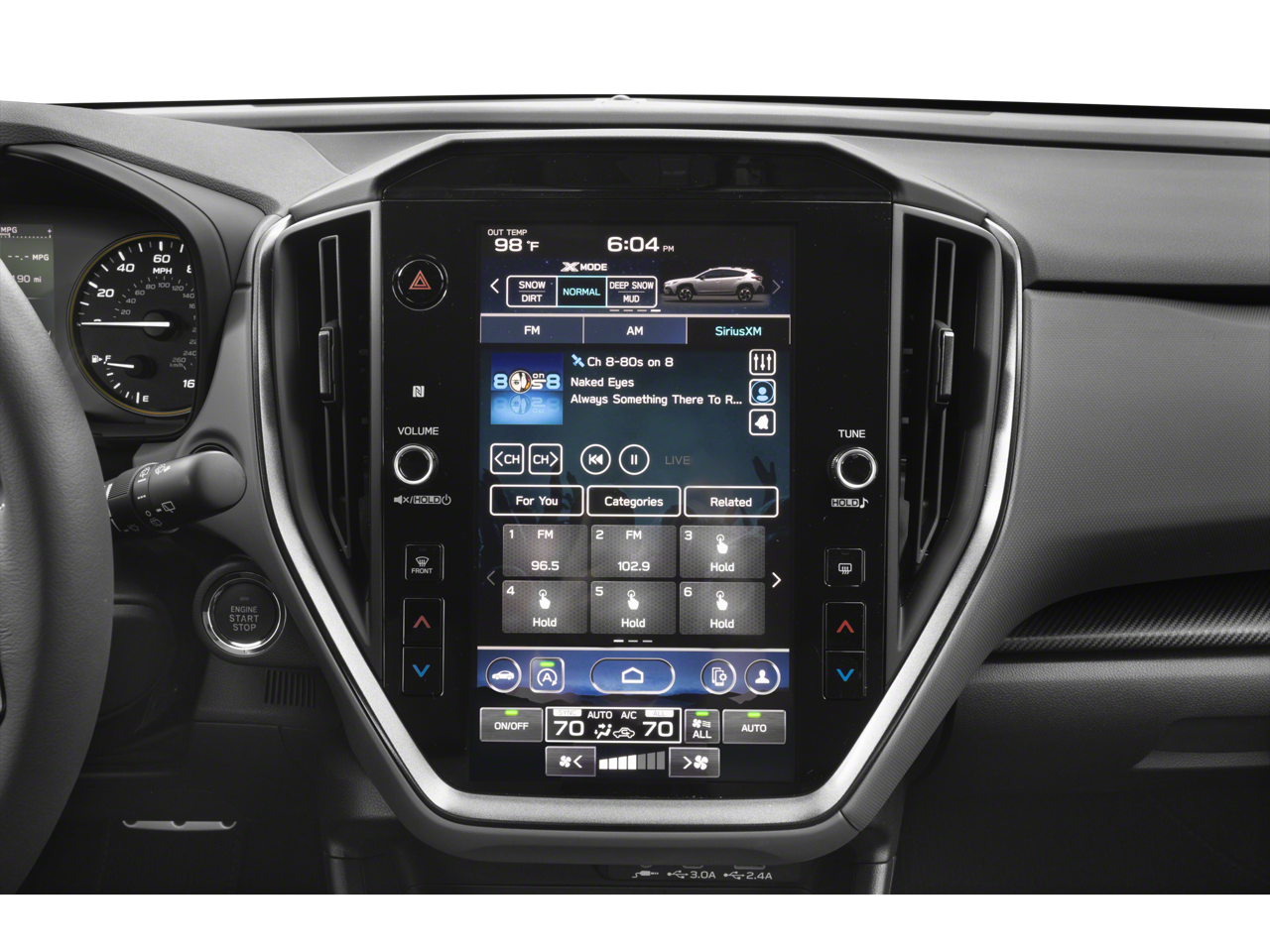 - Radio: Subaru STARLINK 11.6" Multimedia Plus Sys -inc: AM/FM stereo, HD Radio, multi-touch gesture high resolution display screen, voice activated controls, Bluetooth® audio streaming and hands-free phone connectivity, Bluetooth® hands-free SMS text messaging connectivity, iPod control capability, SiriusXM All Access Radio (4 months free trial included/subscription required after), SiriusXM Travel Link (4 months free trial included/subscription required after), smartphone integration: Android Auto and Apple CarPlay w/full screen view and wireless connection, USB and Over The Air (OTA) audio system update, steering wheel audio system and Bluetooth® control switches, 6 speakers (2 dash panel tweeter, 2 front door and 2 rear door), illuminated 3.5mm auxiliary input jack, illuminated front USB A and C input/charge ports and illuminated rear USB A and C charge ports