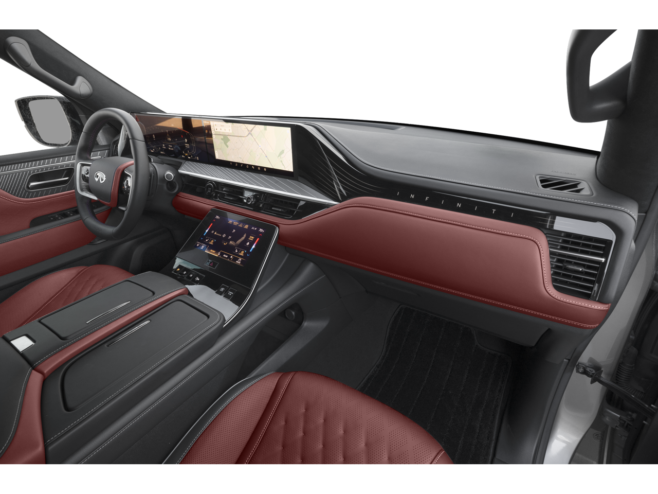 - Radio: Klipsch Reference Premiere Audio System -inc: 24-speakers, 3D audio, Active Sound Enhancement (ASE), demo mode, individual audio headrest speakers for driver and front passenger, INFINITI InTouch services, 4G Wi-Fi hotspot, dual 14.3" infotainment screens w/9" front control panel, Google built-in w/navigation, Amazon Alexa built-in w/hotword, Bluetooth® hands free phone and audio streaming, wireless Apple CarPlay and Android Auto, hybrid radio, SiriusXM w/360L (3-month trial included) and 2 USB type-C ports